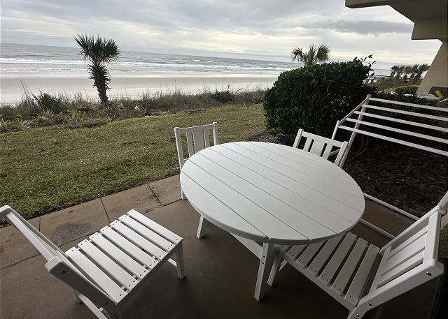 Ground level oceanfront unit! See, hear, smell the ocean waves rolling onto Cresent Beach from the beachfront condominium.